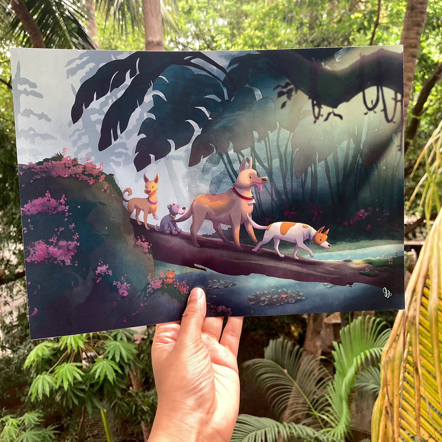 This was my first attempt at developing, printing and selling art merch. I decided to go with a few print products, like a sticker sheet, art prints and plain notebooks, as they were the easiest to find a vendor for. And to keep me motivated throughout the whole thing, I picked my favourite subject in the whole world as the main theme – my dog Roku!