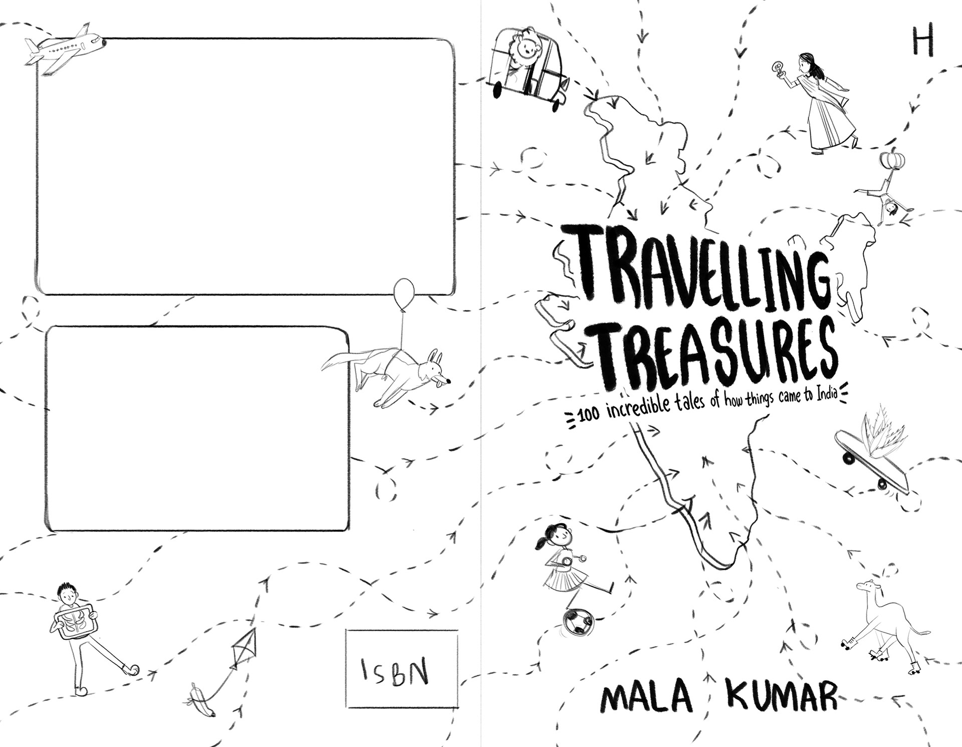 I had the pleasure of illustrating the cover and interior illustrations for this delightful book written by Mala Kumar and published by Hachette India. Written with fun and humour, the author describes how many of the things that are now commonplace in India actually had interesting origins, coming from various countries and kingdoms and in all sorts of ways – by land, sea or trade and even as gifts, through diplomats, kings, queen and so on.